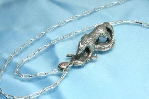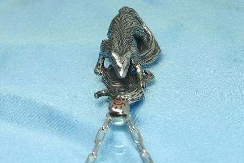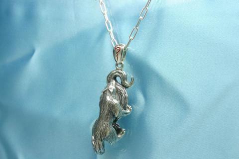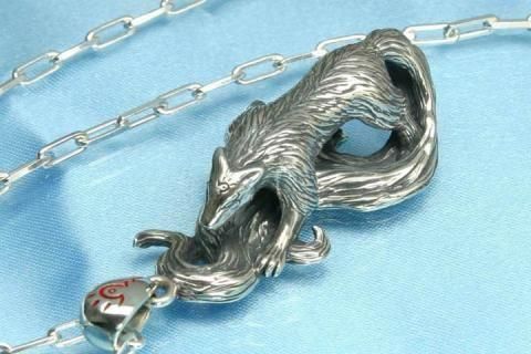 「夏目友人帳」に登場する「斑(まだら)」のシルバーペンダントです。毛並みや顔の模様まで克明に再現しています。バチカン(チェーン通し)には斑のトレードマークでもある眉間の模様が刻まれ、赤色の焼付け塗装が施されています。